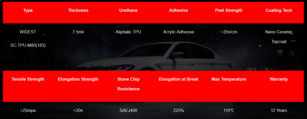 SINCARFILM Widest PPF, measuring 72 inches (6 feet / 1.83 meters) wide, provides the flexibility to be cut and fitted onto nearly any smooth painted surface. Perfect for vehicles with some large body panels. Safeguard crucial areas like hood, fenders, doors, and more!
